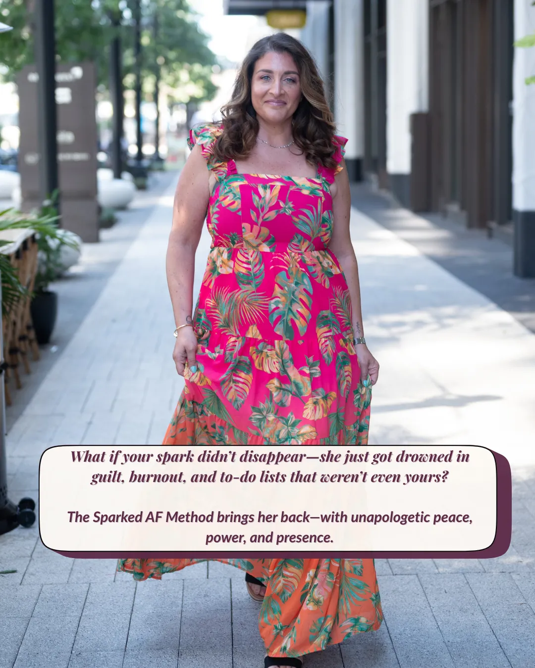 The Sparked AF Method™ isn’t about Bali retreats or burning your life down. It’s built for women like you—the overachieving, overcommitted, “I’ll rest when everything’s done” types. (Spoiler: everything’s never done.)